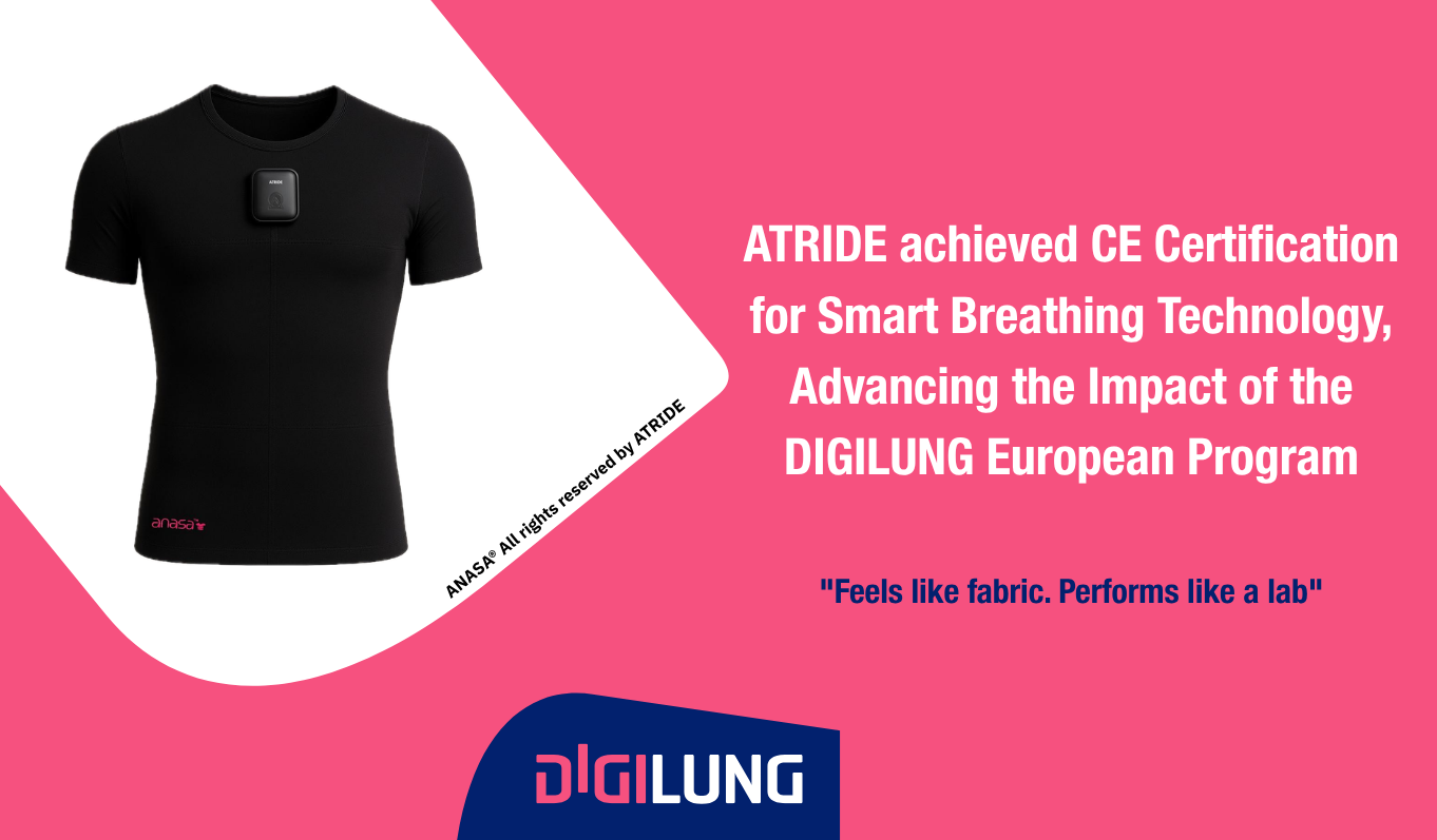 One of DIGILUNG project partners, ATRIDE, has obtained CE certification for its smart breathing technology (e-shirt), marking an important milestone for the development of next-generation respiratory monitoring solutions.